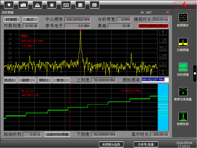 丰富的射频测试功能:扫频频谱分析,宽带与窄带功率测量,频率误差测量,射频 信号源;