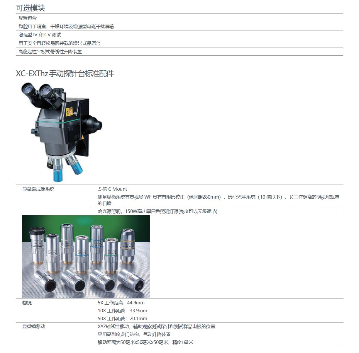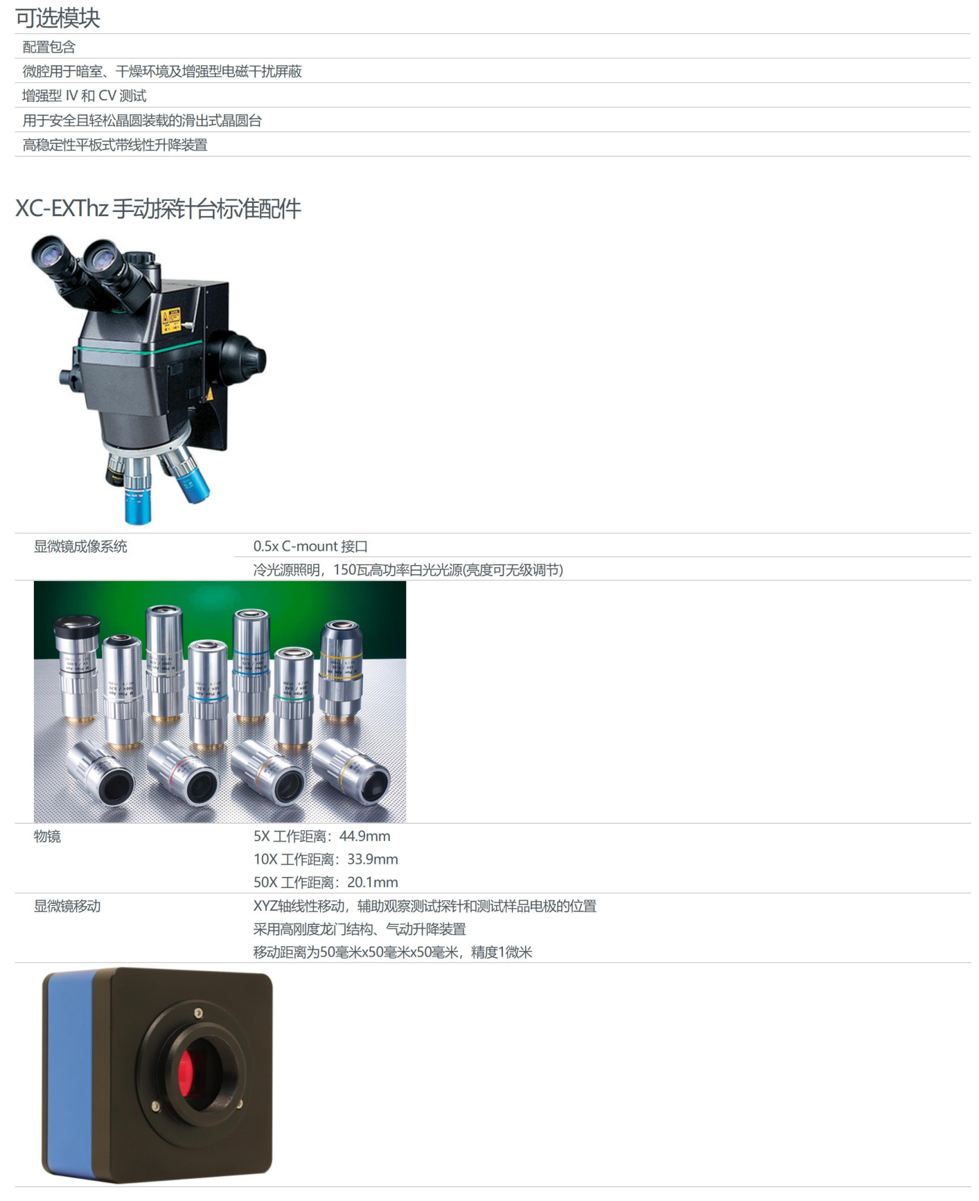 XC-EXThz手动探针台系统适用于200毫米和150毫米晶圆测试。无论您的应用是 RF/微波、器件表征、晶圆级可靠性、电子测试、建模还是提高产量,XC-EXThz平台都在晶圆测量领域引领行业。XC-EXThz 探针台测试系统易于配置,您可以选择测量性能、手动作、夹具尺寸、热范围以及显微镜选项。所有平台都兼容-60°C至300°C的温度范围,以确保升级路径能够满足您未来的测试需求。